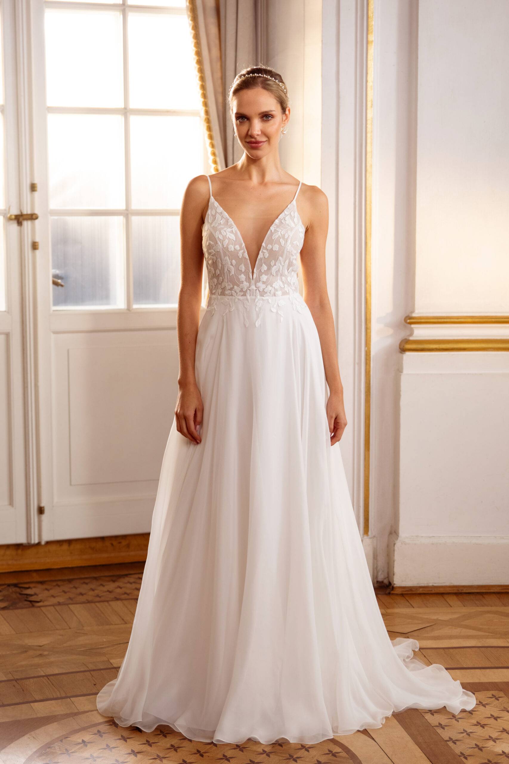 Diese Kleider stehen für einen modernen Style mit vielen romantischen Details.
